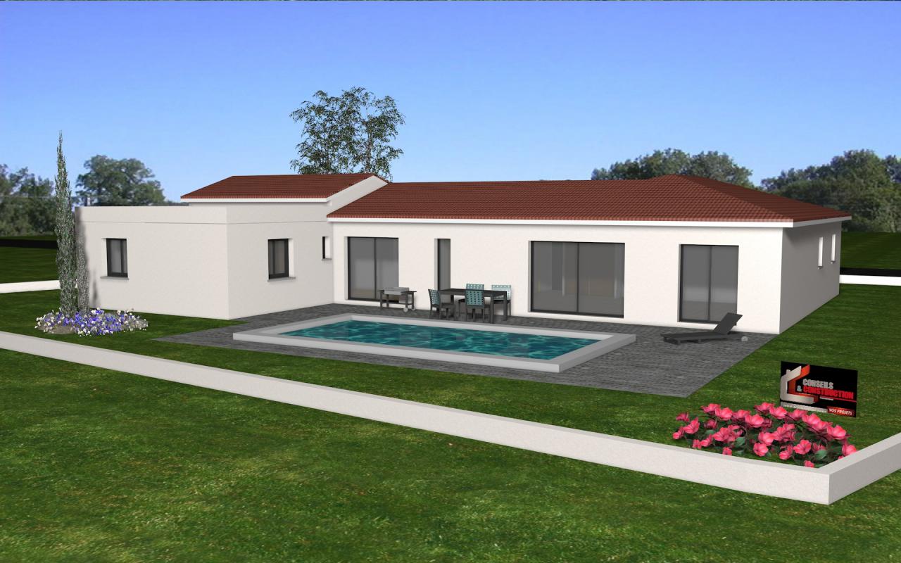Remarquable plain-pied avec son architecture moderne en Z et sa toiture mixant charpente et toit terrasse. La maison rayonne de beauté et offre un confort généreux. Vous profitez de 161m2 habitables entièrement en rdc. La pièce à vivre de 55m2 est parfaitement équilibrée. Très lumineuse, vous accédez à la terrasse par sa grande baie vitrée de 3 mètres. Les fenêtres panoramiques la rendent harmonieuse. Le cellier est spacieux avec ses 11m2 et est accessible par la cuisine et le double garage. L’espace nuit est composé de 5 chambres dont la suite parentale avec double dressing et salle de bains privative + un espace bureau. La salle de bains principale est équipée d’une douche à l’italienne, d’une baignoire, de 2 vasques et d’un placard. Au total il y a 2 WC séparés. La terrasse est intime et spacieuse. Sa configuration lui offre énormément de charme sur toutes les façades. La maison sublime sur un terrain plat ou à faible pente. Pour Conseils et Construction chaque projet est unique et entièrement personnalisé. Toutes nos constructions obtiennent d’excellents résultats au test RT 2012 grâce à notre l’utilisation de matériaux haute qualité et notre savoir-faire, un confort essentiel sur vos consommations, un atout majeur en cas de revente qui fait la différence