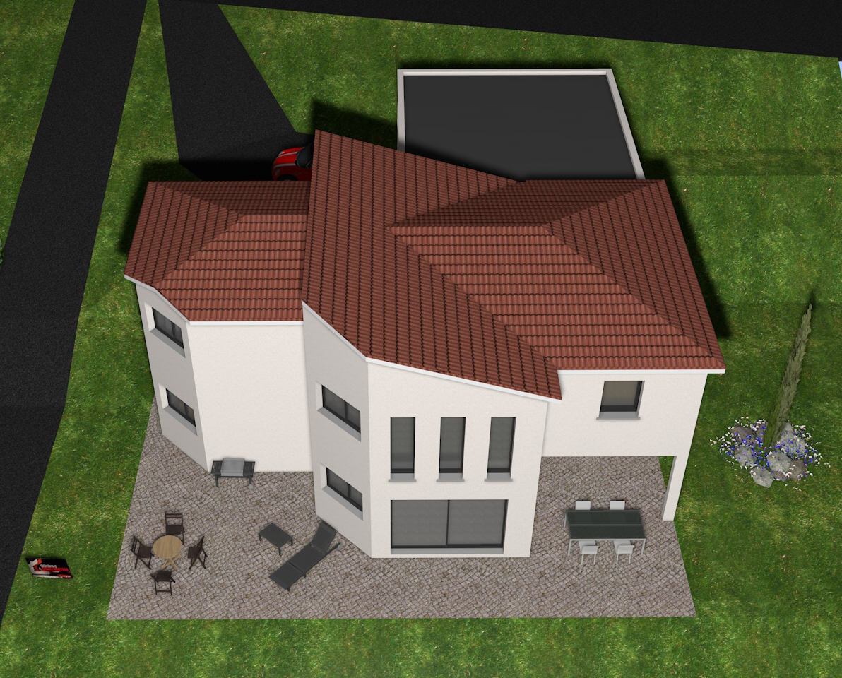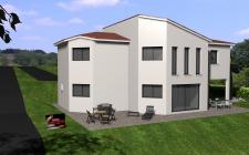 Villa à l’architecture moderne avec de beaux volumes s’adaptant aussi bien à un terrain plat ou en pente