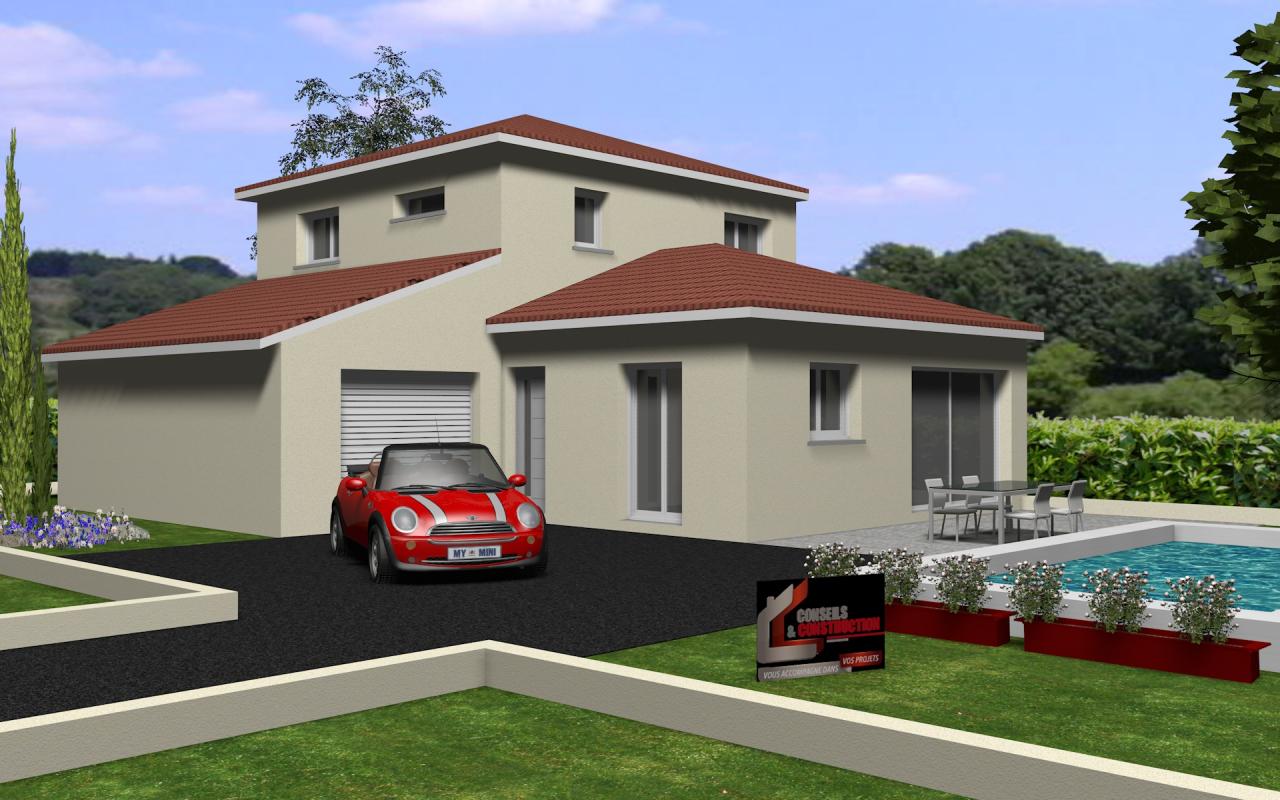 D’architecture moderne, la maison est belle et spacieuse. Sa tour lui offre beaucoup de charme et de fonctionnalité. Compacte et bien étudiée elle s’adapte très bien à un terrain plat même de petite taille, ses 107m2 sont parfaitement optimisés. La pièce à vivre de 45m2 est confortable et lumineuse grâce à ses grandes baies vitrées. La suite parentale au rez de chaussée profite d’un grand placard de 3.50m ainsi que d’une salle de bains privative. Le cellier est facilement accessible depuis le garage de 24m2 et la cuisine pour plus de praticité. A l’étage, l’espace nuit compte 3 autres chambres et une salle de bains avec baignoire, 2 vasques et placard. Au total il y a 2 WC. Charmante et lumineuse, vous trouvez une fenêtre panoramique apportant une belle clarté.