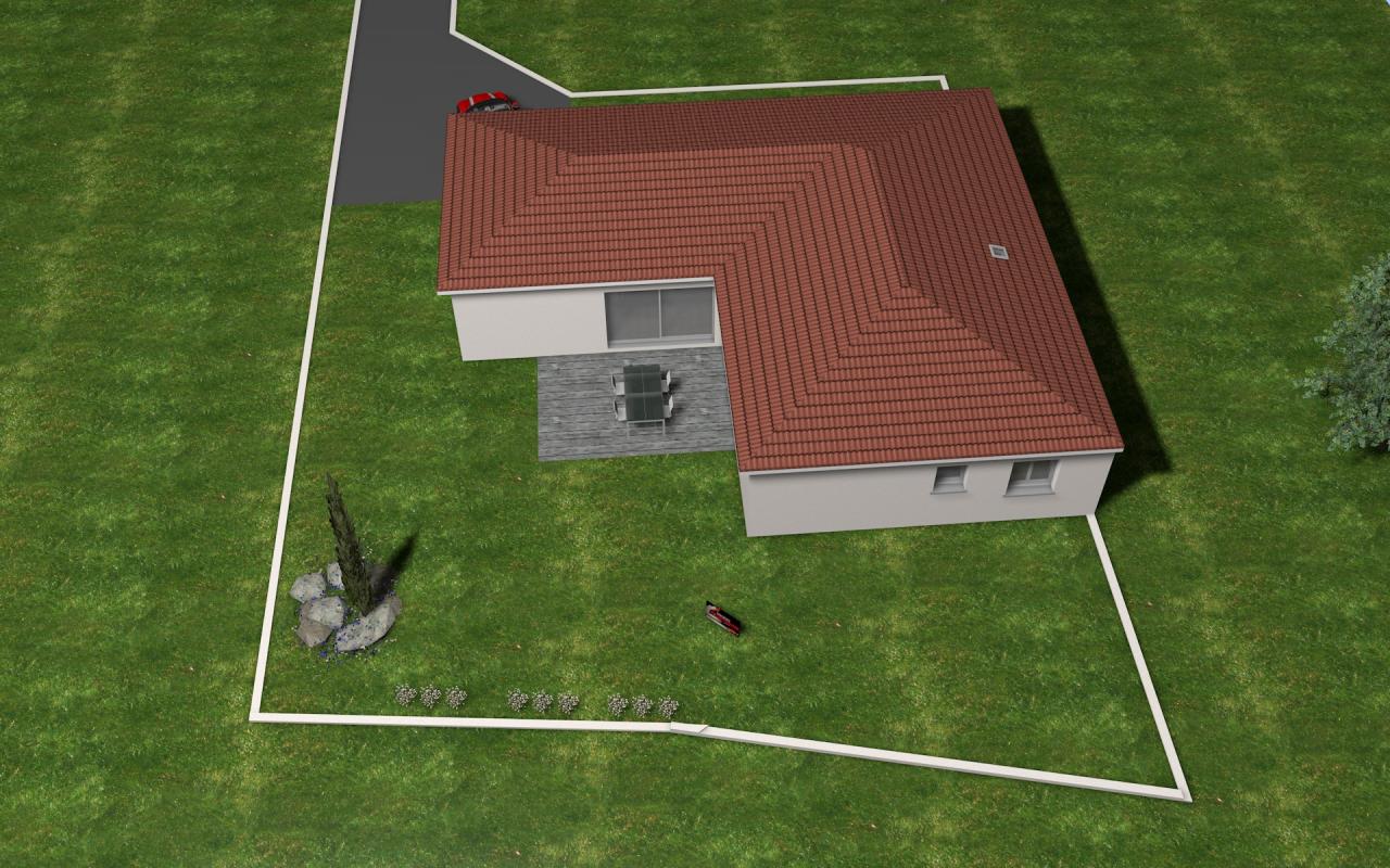 Architecture soignée pour cette belle maison de plain-pied de 123m2 habitables. Etudiée pour s’adapter à un terrain plat ou légèrement en pente, elle est surprenante car elle a l’avantage de s’implanter parfaitement sur un terrain même étroit. Sa forme en L offre de l’intimité à la terrasse. La pièce à vivre est confortable avec ses 46m2, facilement aménageable et très claire grâce à sa grande fenêtre panoramique de 2.40m et sa baie vitrée de 3m. Le cellier très bien positionné est accessible depuis la cuisine et le garage. La suite parentale mesure 21m2 avec son double dressing et sa salle de bains privative. Lumineuse, elle accède directement sur l’extérieur grâce à sa porte fenêtre. L’espace est nuit est composé de 3 grandes chambres supplémentaires et de la salle de bains avec douche à l’italienne et 2 vasques. Au total il y a 2 WC séparés. Le garage accueille une voiture tout en gardant un espace atelier.
